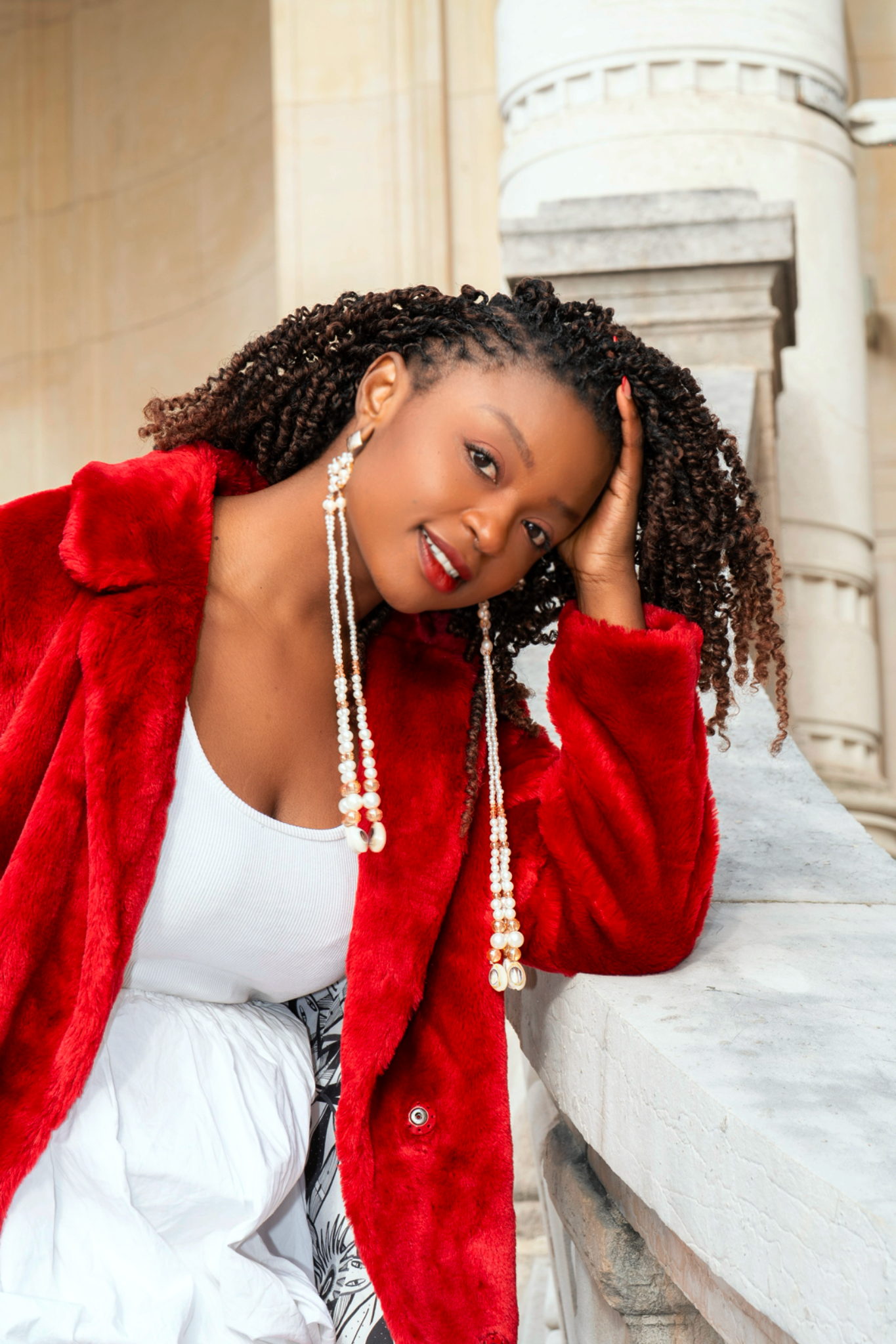 Leur structure longue et aérienne sublime le port de tête, tandis que les cauris, symboles ancestraux de protection et de prospérité, apportent une touche organique et précieuse. L’ensemble est ponctué d’un fermoir doré texturé, signature d’un bijou à la fois artisanal et sophistiqué.